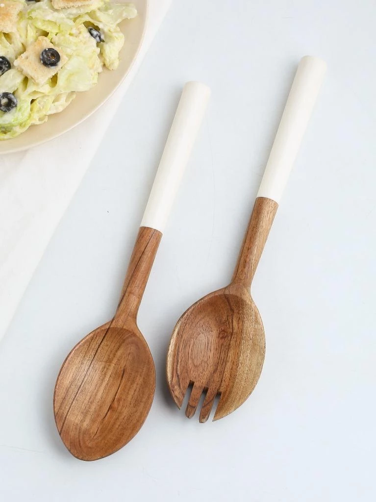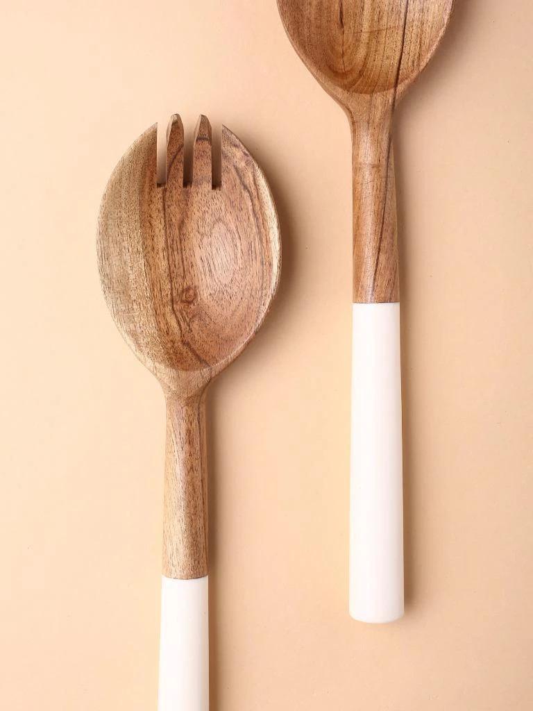 These handcrafted salad servers bring together cool resin with richly-grained acacia wood, a material prized for its natural beauty and strength. Care Instructions- Hand wash only
