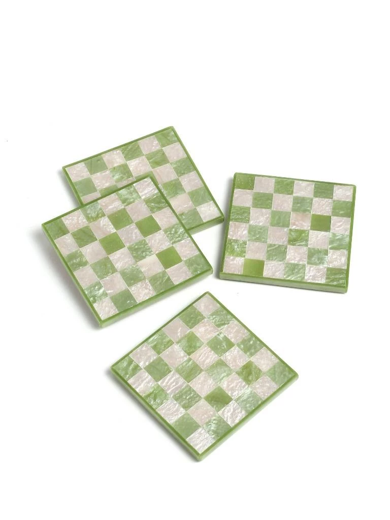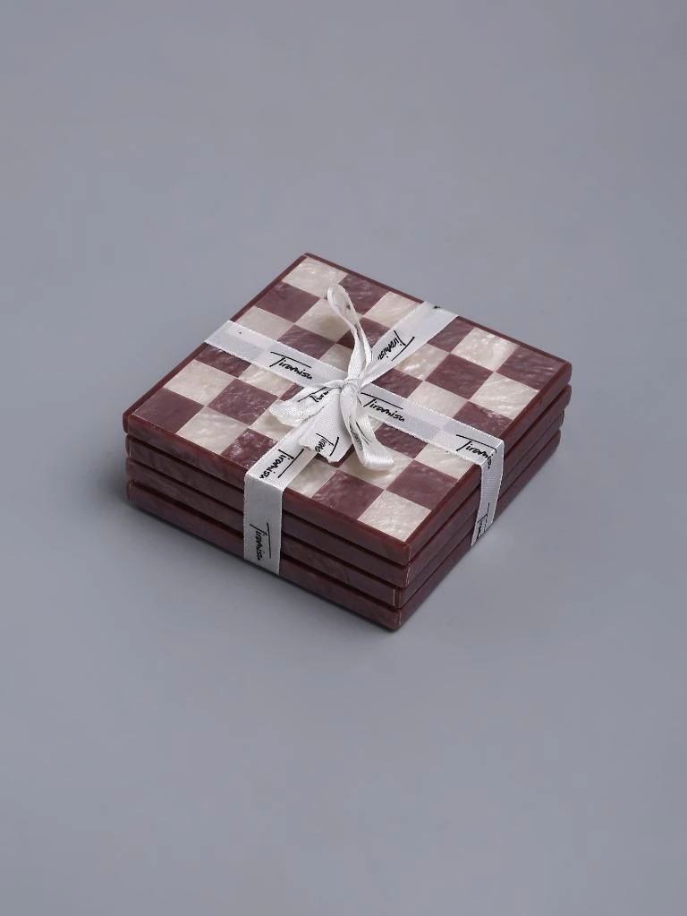 Promo ๐ Tiramisu Checkered Resin Coasters – Set of 4 ๐
