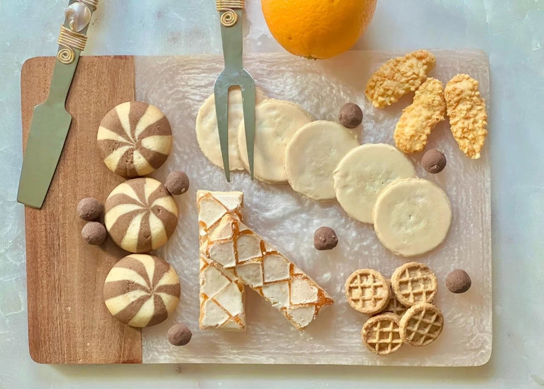 Two great materials square off in clean, graphic serving option for cheeses, sushi, and other small bites. This luxurious piece will make your cheeses and other appetizers look even more delicious, enhancing cocktail hour with its organic beauty. Handpoured Resin/ Wood Color variances will occur due to natural material