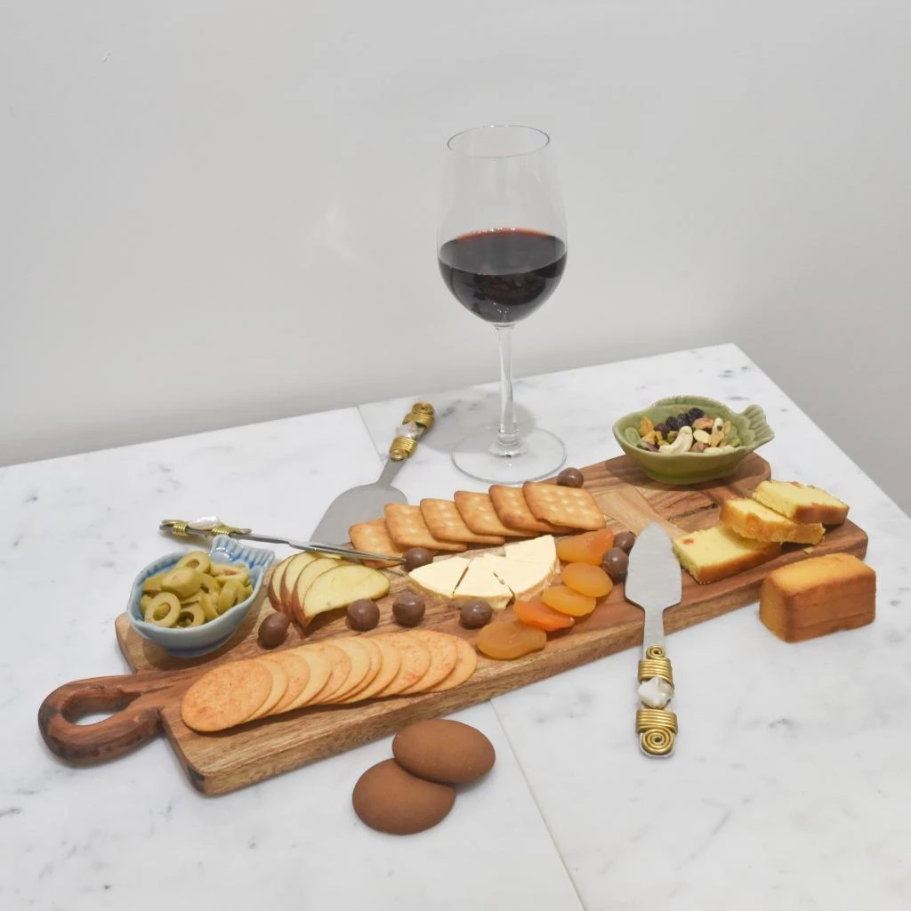 Featuring a bow tie accent for a fancy touch, this fΓͺte-ready cheese board brings a formal twist to serving artisanal cheeses at your next get-together. This is one kitchen essential you’ll want to show off as a cheese plate, then hang prominently when not in use. This Teardrop Acacia Wood Cheese Platter is a part of “Forest Floor” collection. Wooden Cheese Platter Acacia Wood Hand-wash and dry immediately. Handcrafted In India
